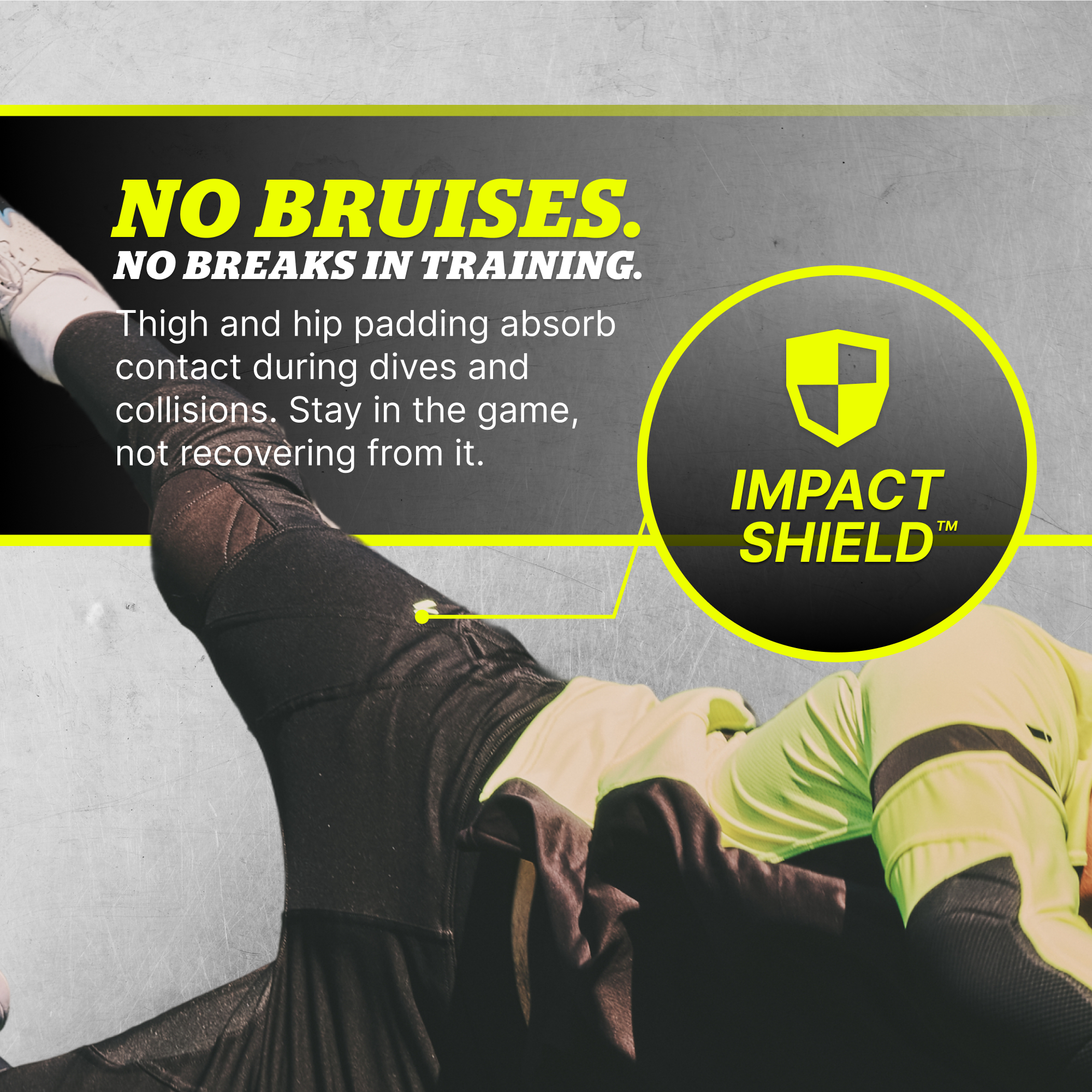 • They provide elite-level padding at the hips, thighs, and knees—designed to absorb impact and reduce injury during dives, slides, and collisions.
