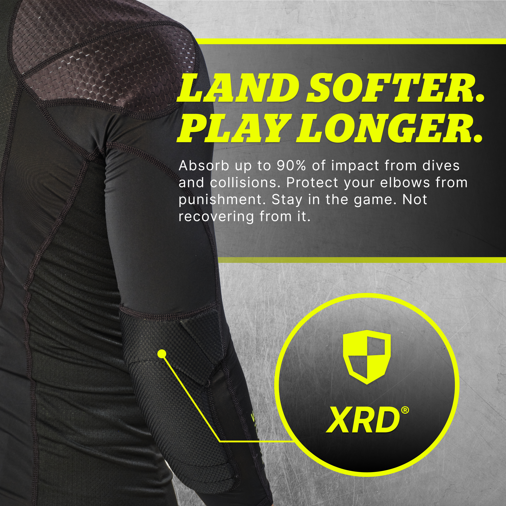 • Yes. It’s powered by Poron XRD® elbow pads that absorb up to 90% of impact—flexible in motion, firm on contact.