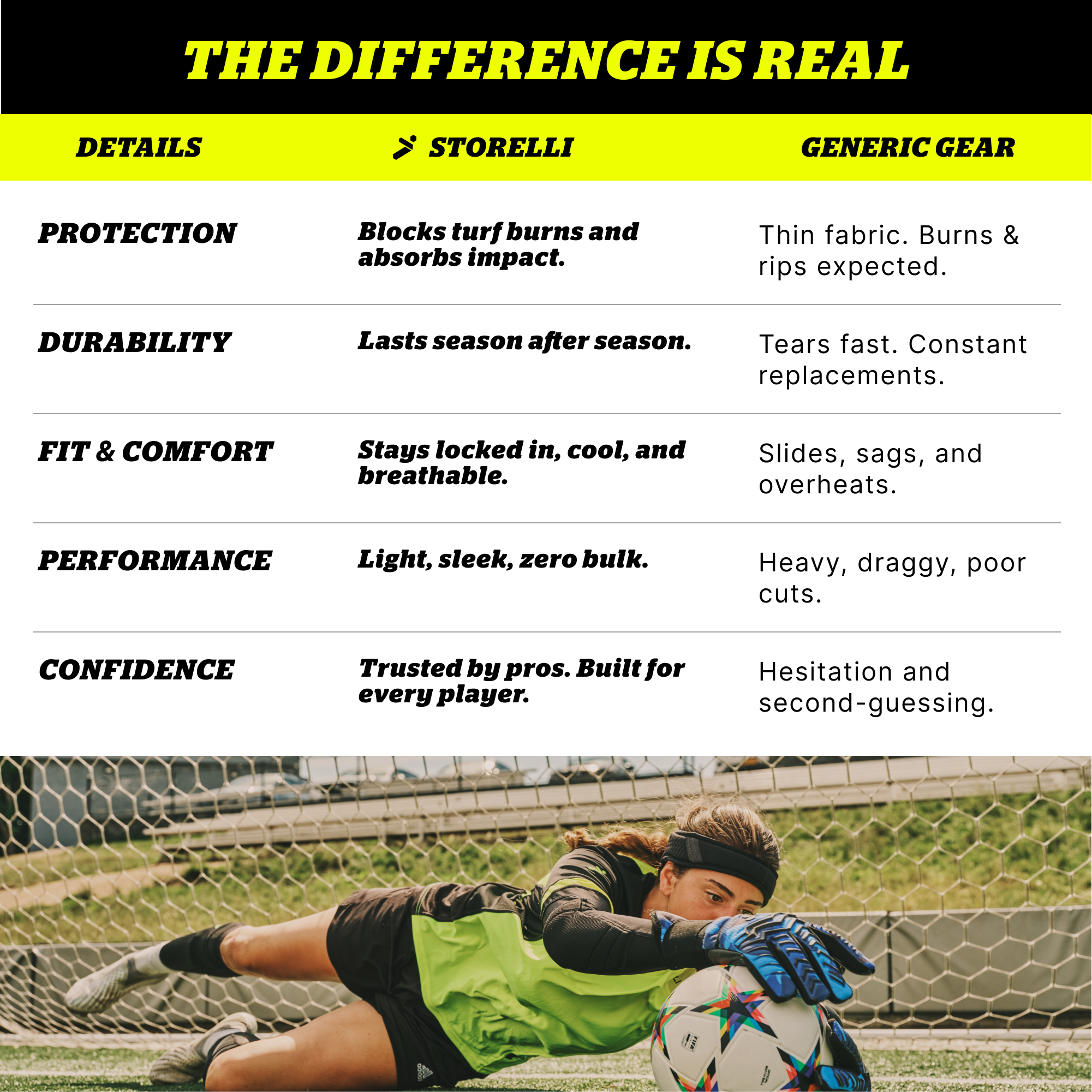 Storelli gear is used by elite athletes and battle-tested on turf, grass, and everything in between. Designed to handle full-contact intensity—no excuses, no compromises.