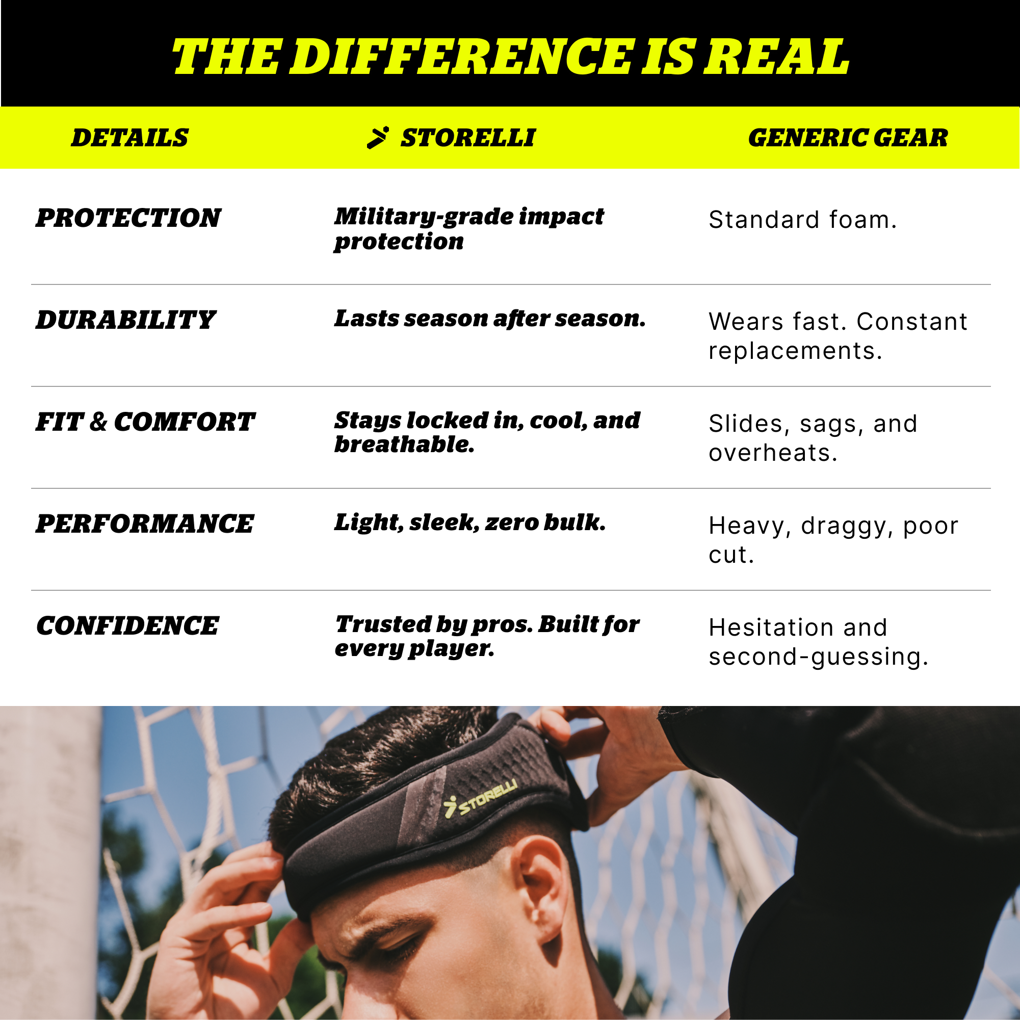 • Ideal for any player who leads with their head—especially defenders, midfielders, and aerial specialists looking for game-ready protection backed by real data.